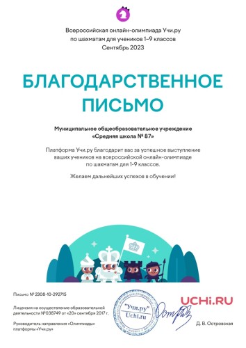 На интерактивной платформе Учи.ру закончилась школьная онлайн-олимпиада по шахматам для учеников 1–9 классов.